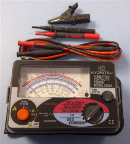 Kyoritsu 3132A Analog Insulation Tester/Resistance Meter - Reliable Megger for Insulation and Continuity Testing
